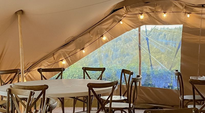 Les panneaux cristal de notre tente nomade RHI combinent élégance et fonctionnalité.