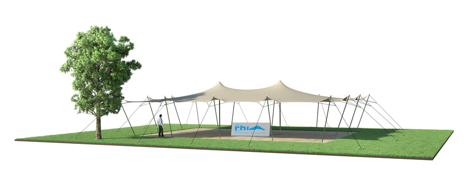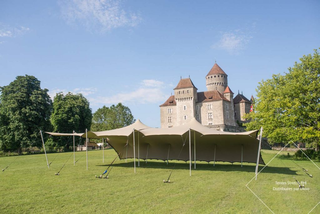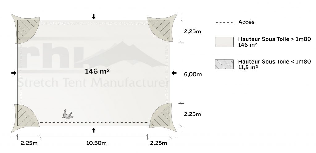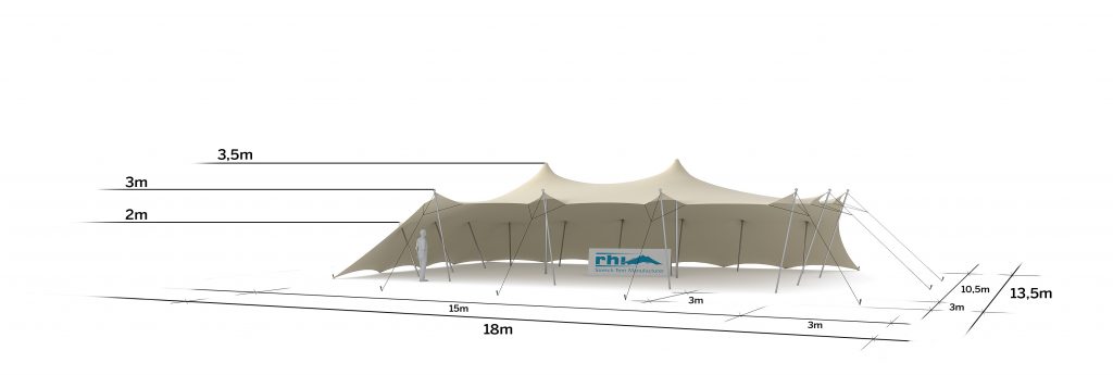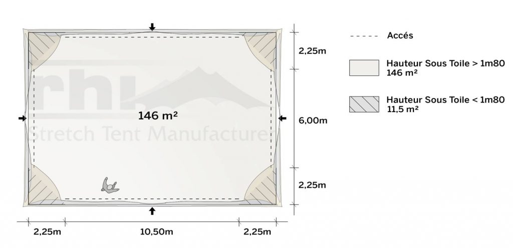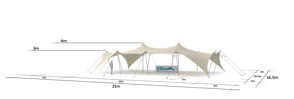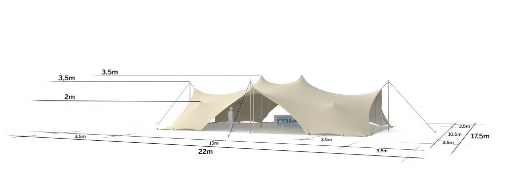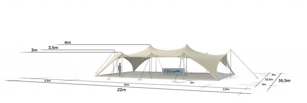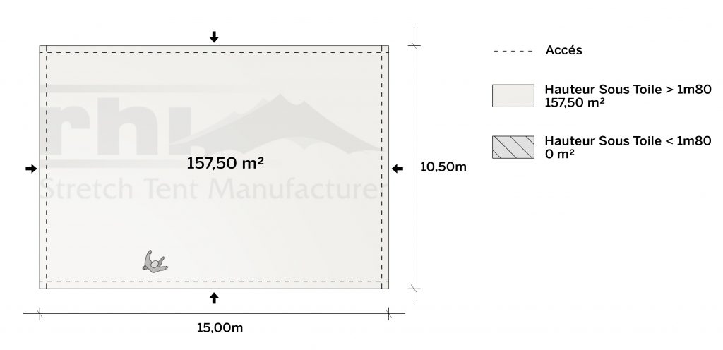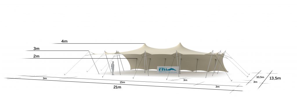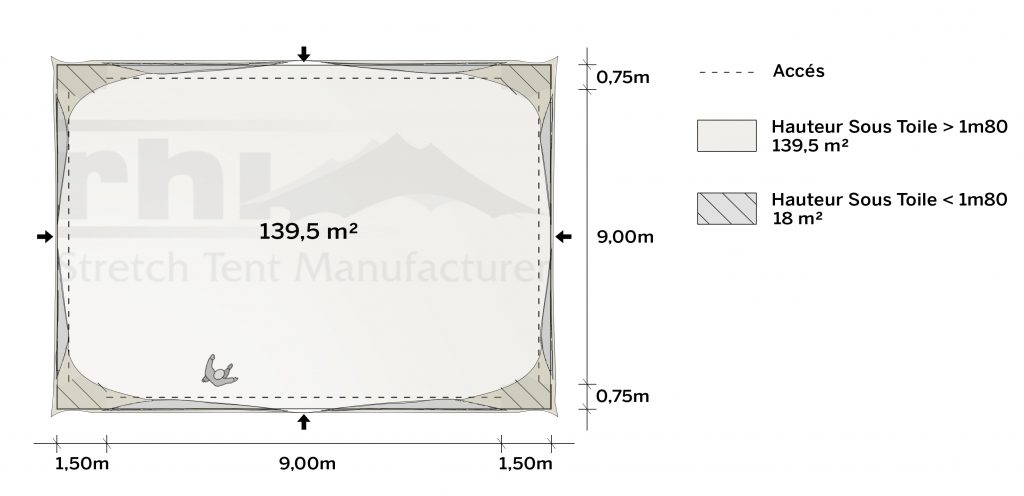 Dans le cas d'une impossibilité d'ancrer la tente, nous utilisons le lestage. (2 tonnes dans un angle, et de 1 tonne par encrage sur un côté.)