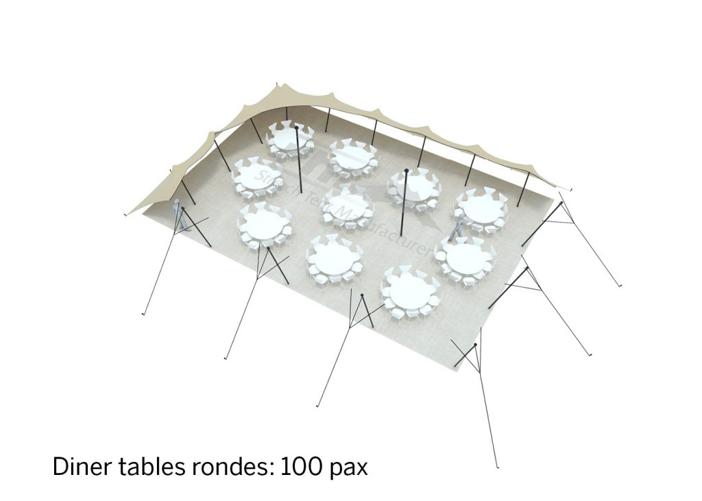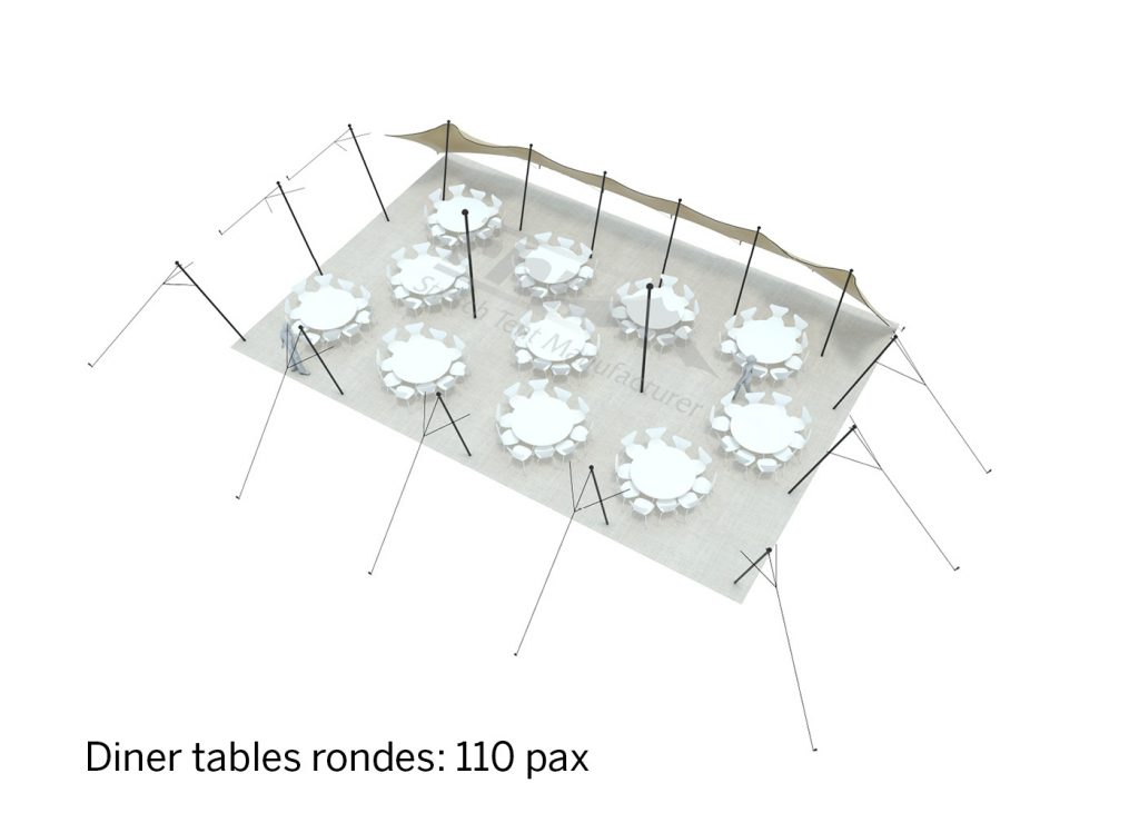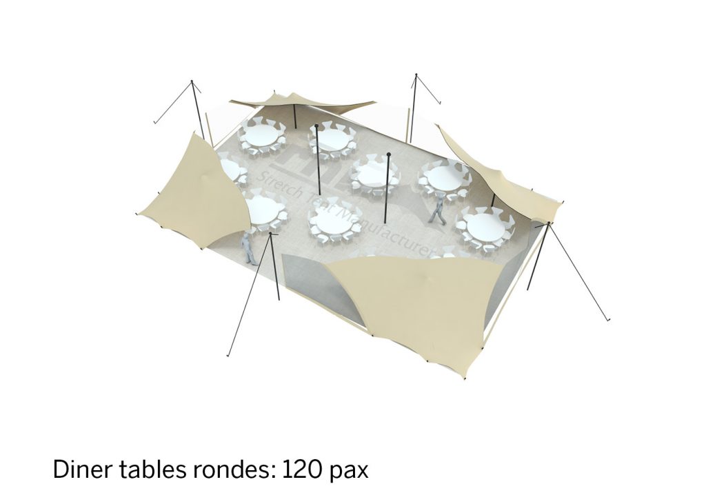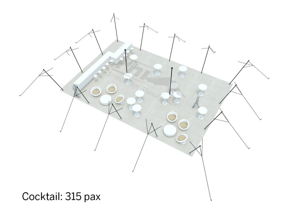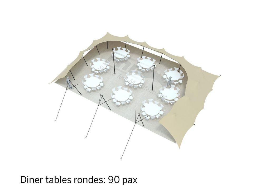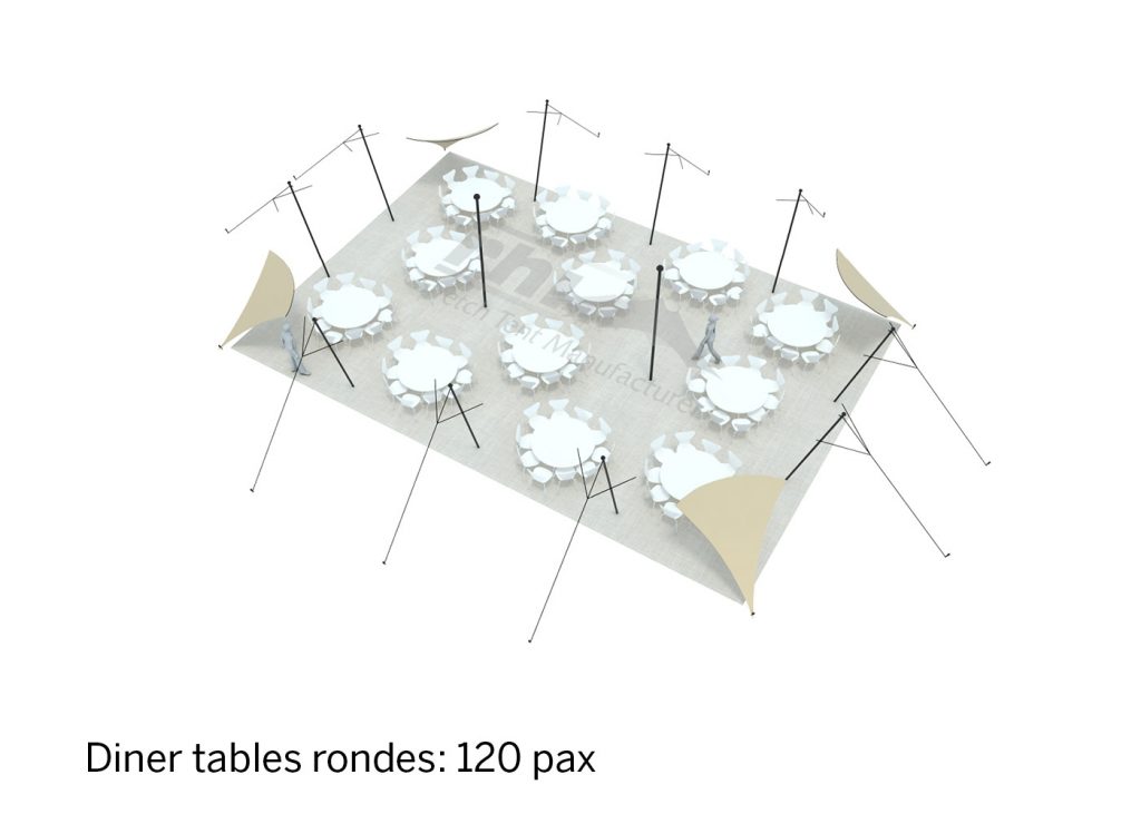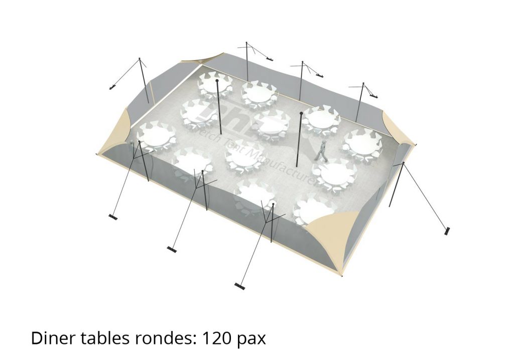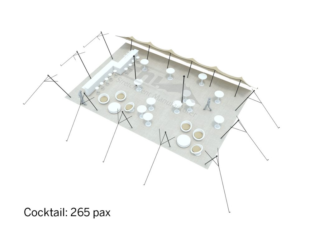 Surface conseillée: Surface pour le dîner + Surface pour le Cocktail en cas de météo capricieuse.