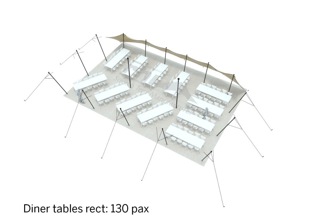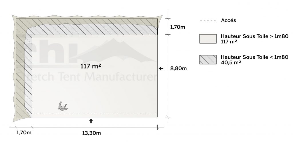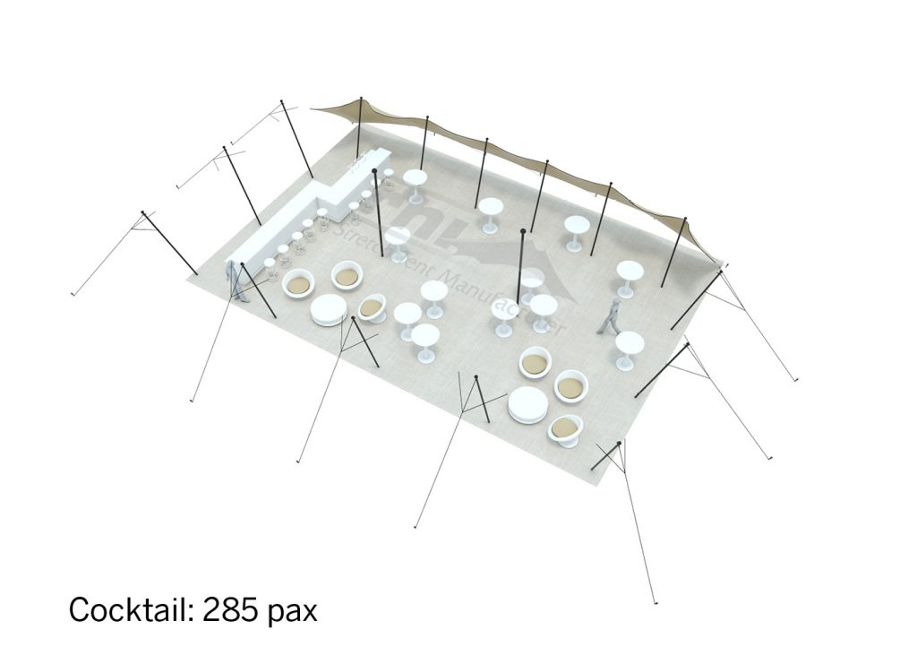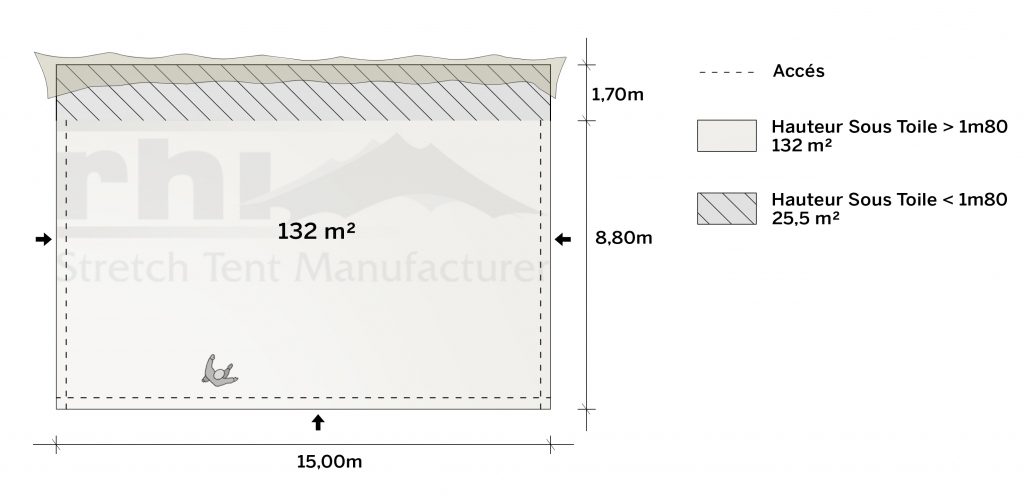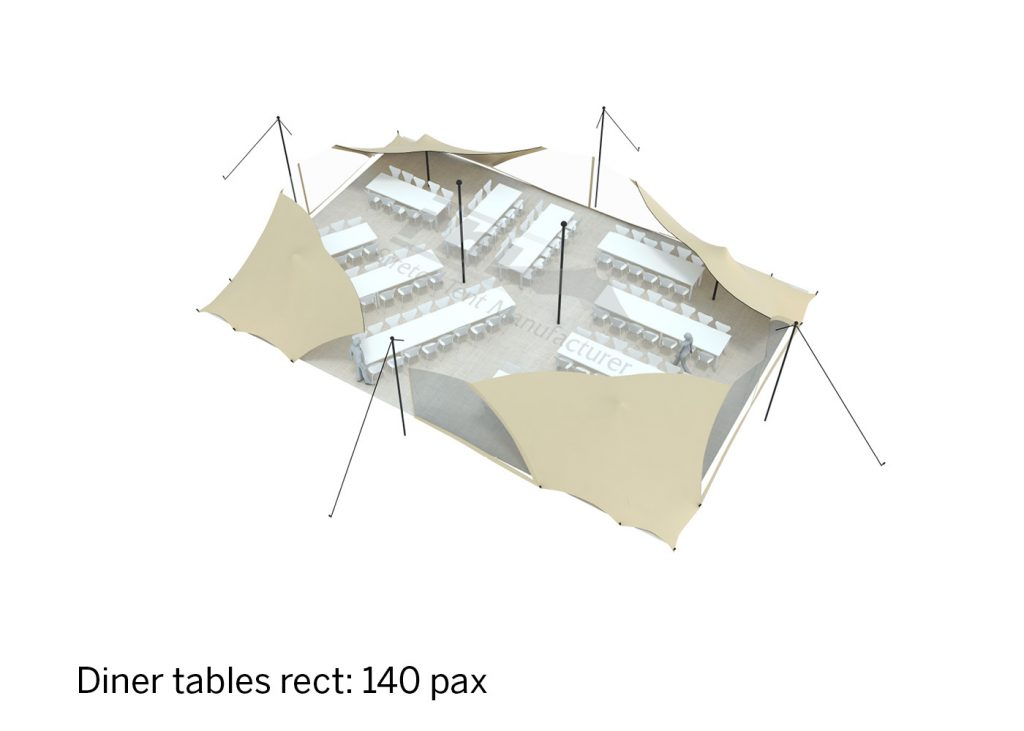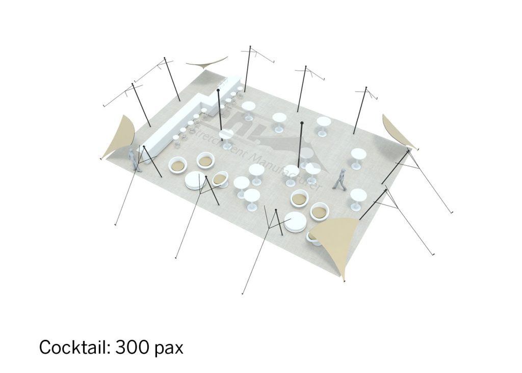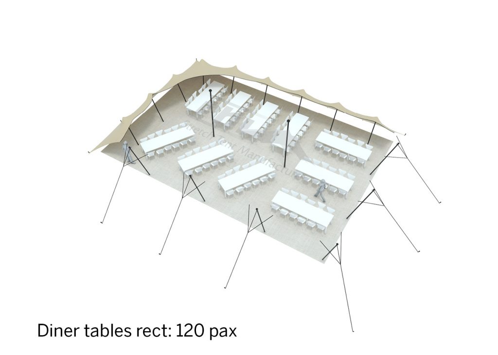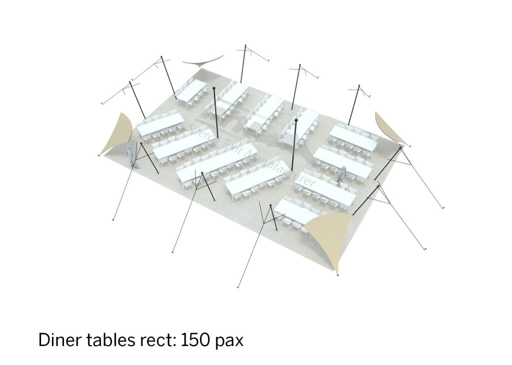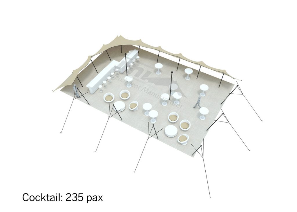 Surface conseillée: Surface pour le dîner + Surface pour le Cocktail en cas de météo capricieuse.