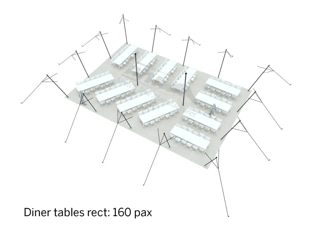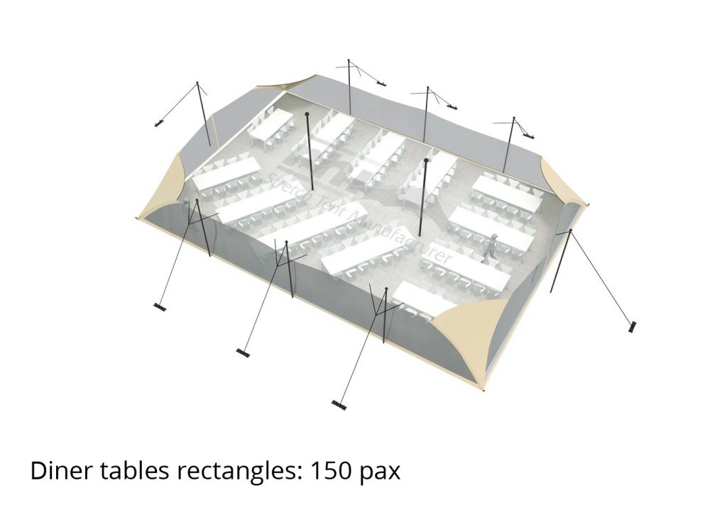 - Lors d'un dîner de 80 invités, en table rectangle, vous aurez besoin de 80m².